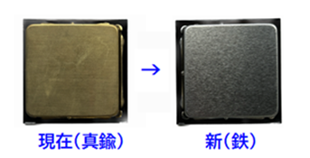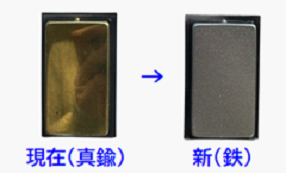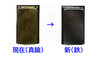 変更点① 底板の材質が真鍮から鉄に変更となります。 対象商品(各全サイズ。現仕様の在庫がなくなり次第、順次変更。)| PF-132 しおり丸 古美 / PF-133 しおり丸 GB | PF-192 しおり正角 古美 / PF-193 しおり正角 GB |