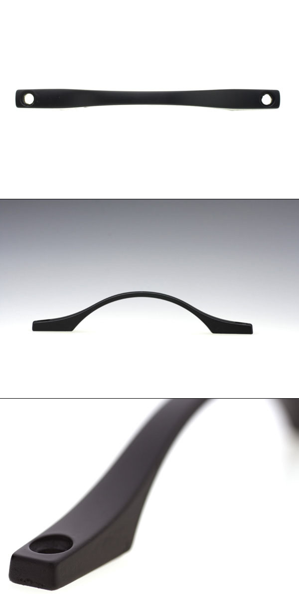 スリムで安価な定番製品で、表面処理は美しい艶消しの焼付け黒塗装。表からのビス止め式なので取り付けが簡単です。