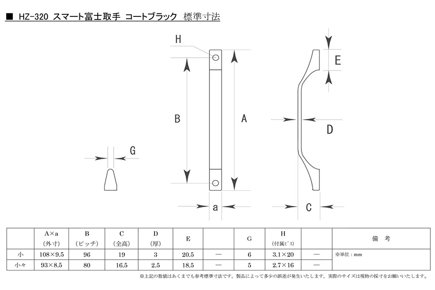 | 付属ビス | 小は3.1×20、小々は2.7×16(※同色系ビス) |