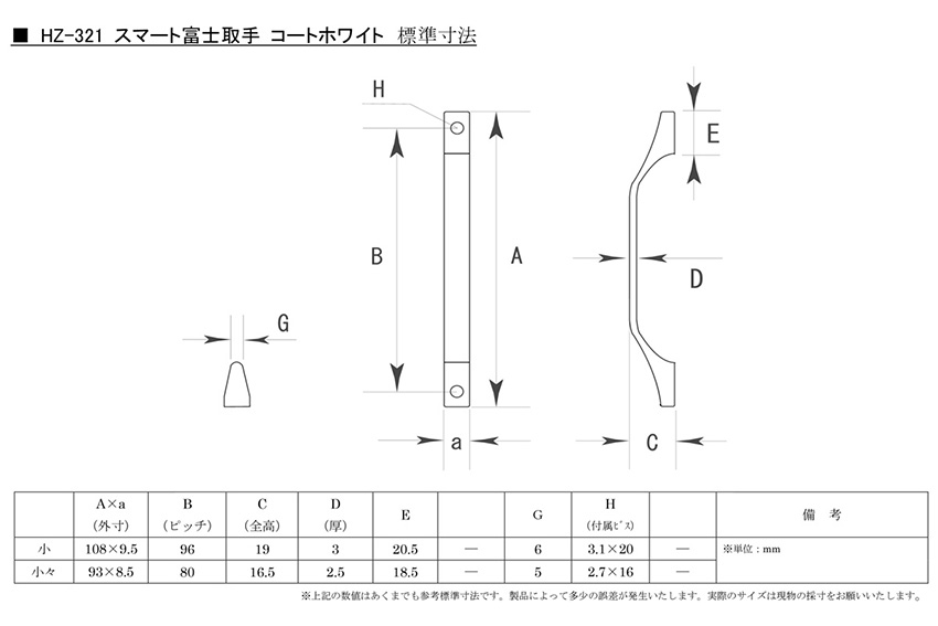 | 付属ビス | 小は3.1×20、小々は2.7×16(※ビス頭白塗装) |