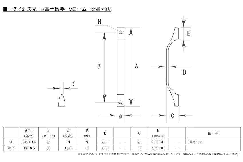 | 付属ビス | 小は3.1×20、小々は2.7×16 |