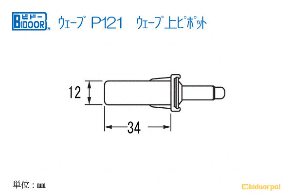 上ピポット折戸の回転軸となる金物。吊元側に取り付け、ブラケットに差し込みます。通常タイプ。