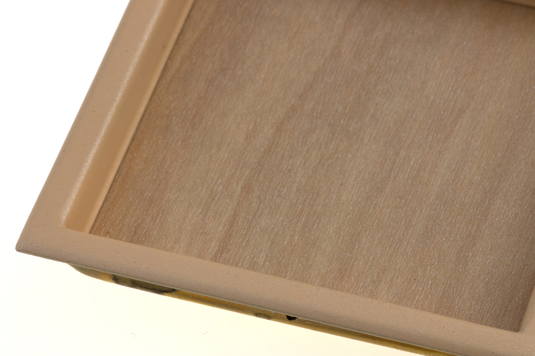 - 金属製ボディと木目シート底板の組み合わせで、木製引手の欠点であった「木目柄・色の不均一」「反り」「強度不足」を解消しました。