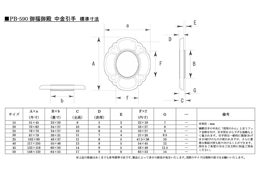 | 備考 | BIDOOR襖引手 使用上の注意等 (※必ずご覧ください) BIDOOR最新カタログ「ワトモス Ver.2」(PDF) |