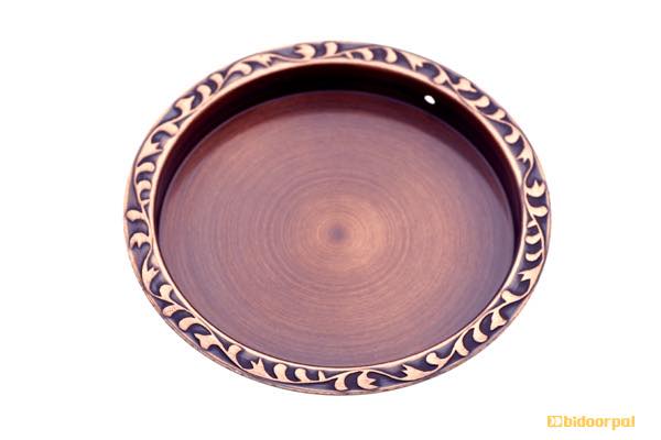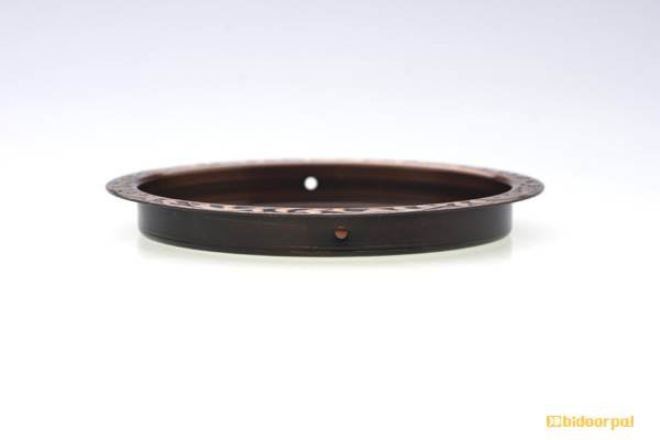外縁が平面仕立ての襖引手(横引き用)。銅製。釘穴あり。