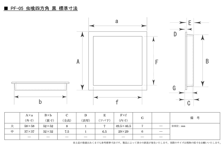 PF-05 虫喰四方角 黒