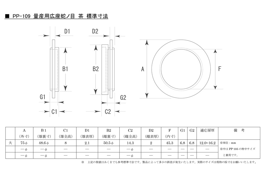 ※この製品に中サイズをお求めの場合には、PP-105の特中サイズをお選びください(PP-105の特中はPP-109の中を兼ねています)。