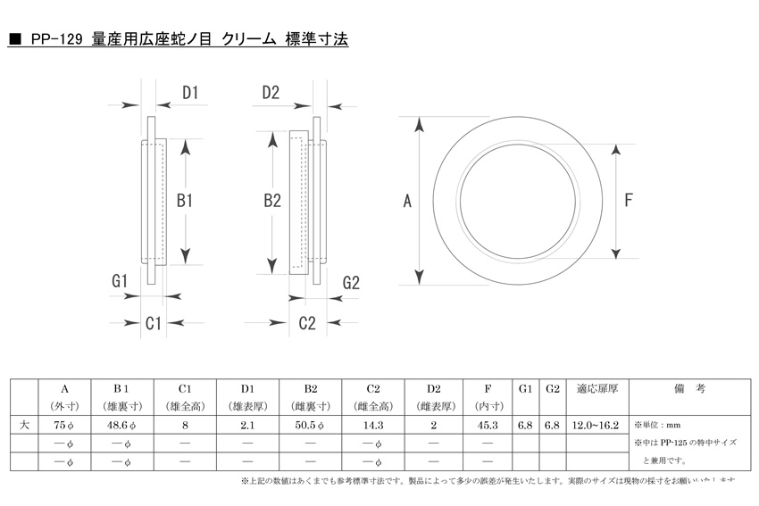 ※この製品に中サイズをお求めの場合には、PP-125の特中サイズをお選びください(PP-125の特中はPP-129の中を兼ねています)。