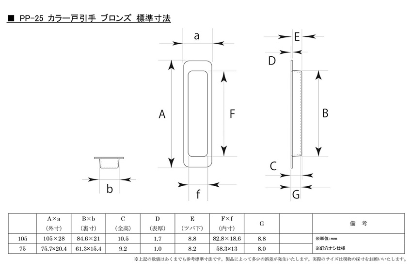 PP-25 カラー戸引手 ブロンズ