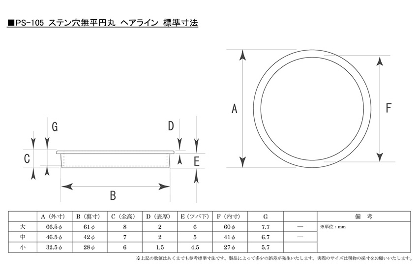 PS-105 ステン穴無平円丸 HL