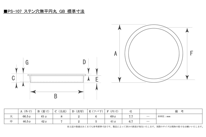 PS-107 ステン穴無平円丸 GB