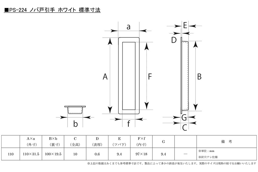 PS-224 ノバ戸引手 ホワイト
