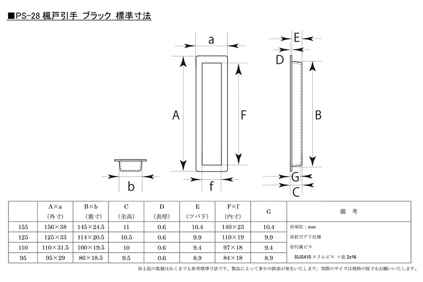 | 付属ビス | SUS410スリムビス +皿 2×16(頭は黒塗装) |
