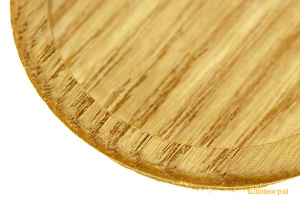 材料にはホワイトアッシュを使用。「外縁部分を平らに加工、その分、表厚が薄い」という点でPW-05 桑丸とは若干、見た目も仕様も異なります(PW-05では外縁部分は丸みを帯びています)。ツバ下サイズ(掘込サイズ)が6mm以下の為、12mm芯材でも両面同じ位置での取り付けが可能です。