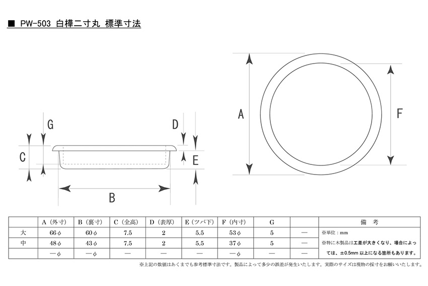 PW-503 白樺二寸丸 クリアー