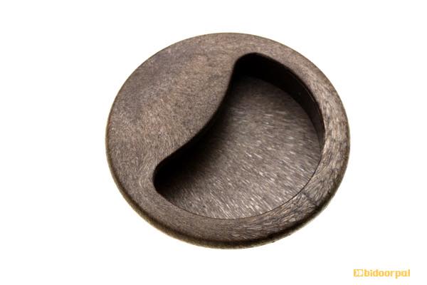 ABS樹脂製、開き用の丸型引手。接着剤止め。