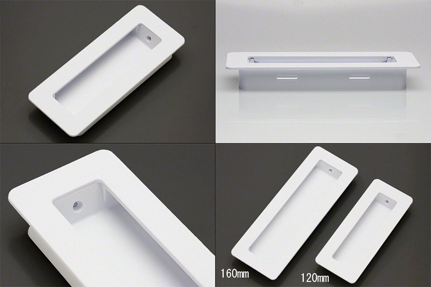 樹脂製の開き用引手。ビス止め式(※付属ビスの頭は引手の底部と同系色)。