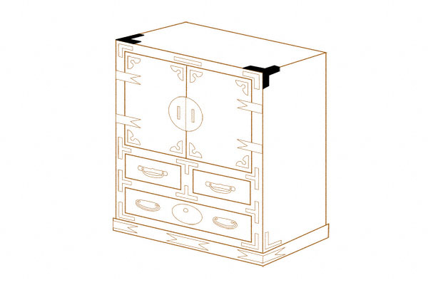 「T折」は、家具の角を飾るために折れ曲がった形状になっている装飾金物です。用途に合わせて自由な組み合わせが可能です。